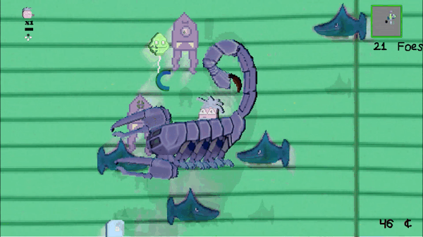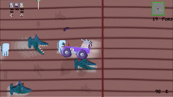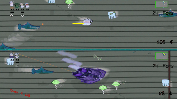 This arcade roguelike features twitchy 8 directional movements, a chargeable shot, dash and 3 custom actions. Collect cash from foes to purchase gumballs after every round and upgrade your hovercrafts 6 Attributes.
