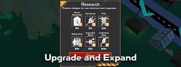 As the island community flourishes, your expertise as a Power Network Tycoon will be put to the test. You'll have the opportunity to upgrade and expand your network by building new power generators, power lines, substations and capacitor banks.