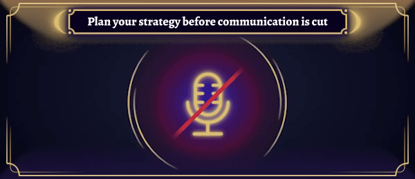 Silently work together - for half of the round team members are not allowed to talk to allies and reveal hidden hands.