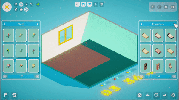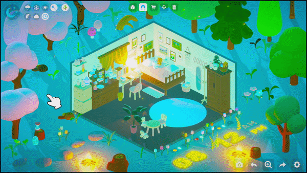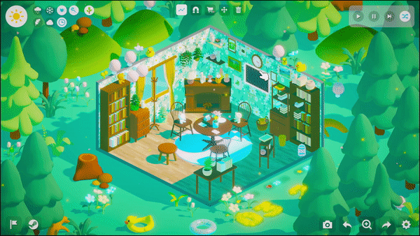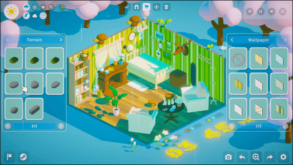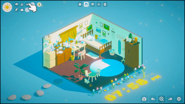 The game offers a large number of plants such as flowers and trees that you can choose and place to make your outdoor scenes come alive. Feel the plants grow under your care and experience the picturesque beauty of the different seasons. Try interacting with different plants, perhaps the plants will surprise you! And try to build your own ecosystem, maybe it will attract small guests to visit!