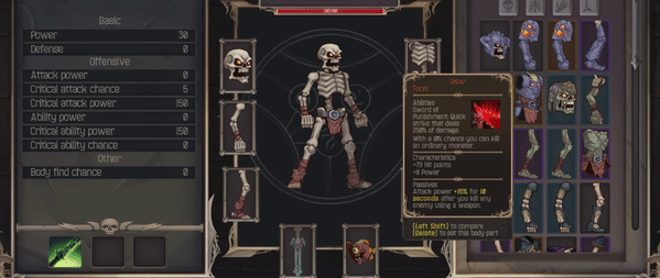 You will embark on an epic journey into a procedurally generated world where you will explore a variety of locations full of monsters and traps. You have to collect body parts of the various monsters, and the rarity system will affect the generation of stats and passive effects. Each collected body part provides new abilities and capabilities, changing battle tactics.