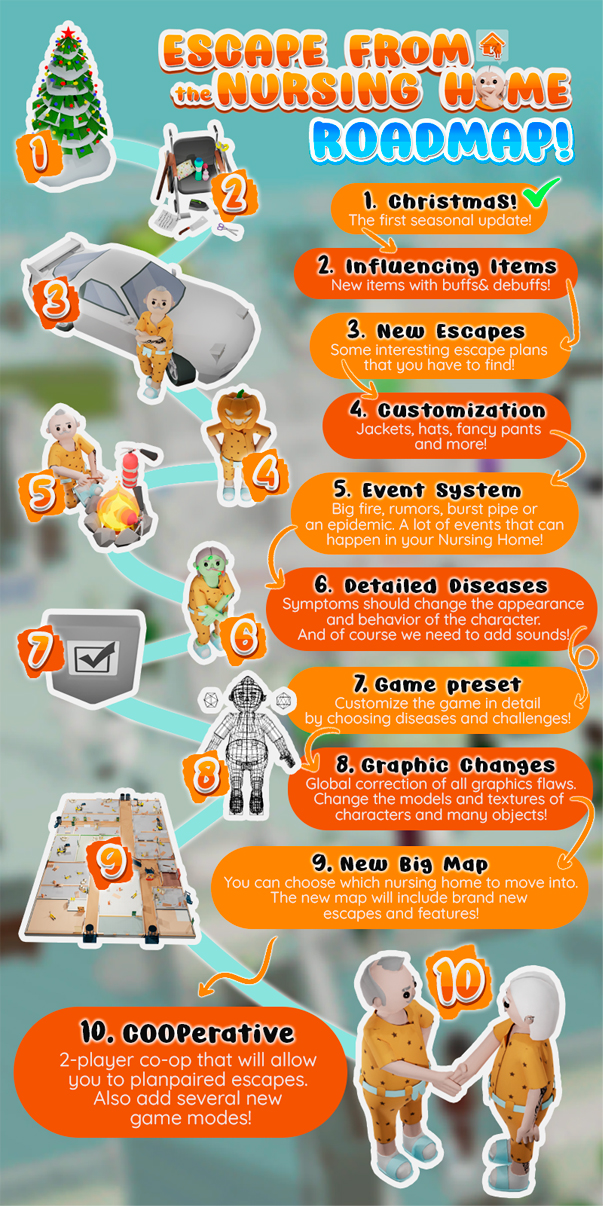 You're an old man, so diseasesis an unpleasant but common thing for you. Arthritis, poor eyesight and hearing, or ordinary diarrhea can greatly affect your well-being! "Escape from the Nursing Home" has an impressive list of diseases, and each of them will have its own positive or negative effect on the character, as well as affect the gameplay.