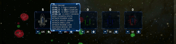Each drone at your disposal comes equipped with a variety of abilities, like attack speed, power, critical, range, area, slowing, weakening armor. And here's the kicker. You have the power to individually target each drone's cannons, allowing for precise attacks on incoming threats. Want to focus fire on a particularly menacing meteor? Simply select the cannons you want to control and unleash a barrage of firepower!