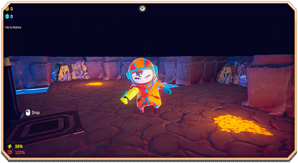 Travel the planet and gather new resources. At first you will carry only a small amount of cargo, so you’ll have to think about transportation! Later on you can build hovering carts that will follow you to your base. Eventually construct a production line to fully automatise the mining process.