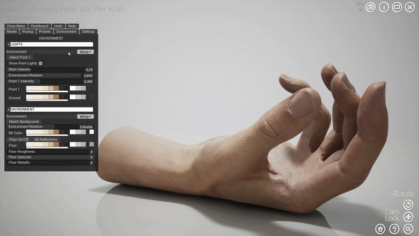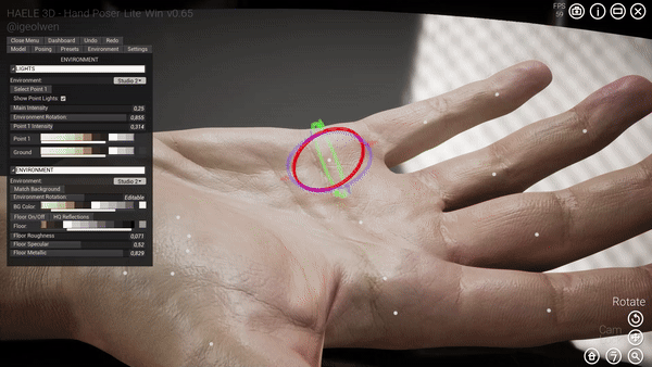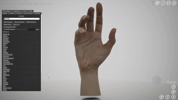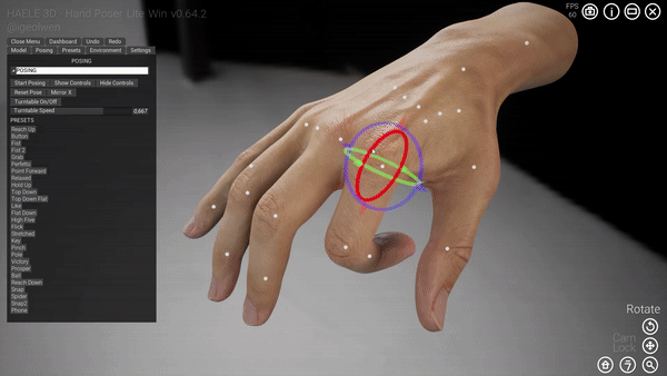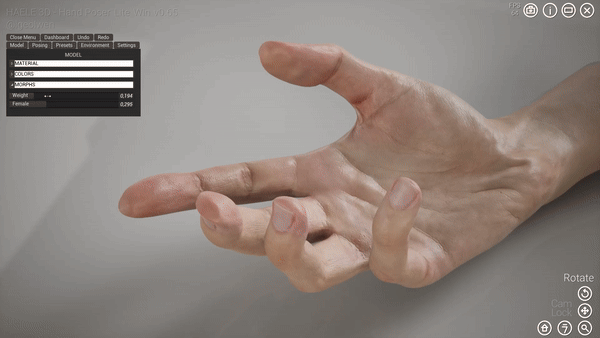 HAELE 3D - Hand Poser Lite is an easy to use 3D hand anatomy reference tool for the artist, with custom and preset hand poses, editable lights, colors and environment. It is a must have software for drawing, painting, sculpting or modeling. Comes with the essential functions of the Pro version.