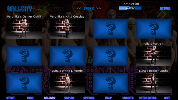 This game also has a Gallery section, which currently has 92 unlockable images.