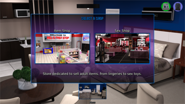In this menu, you can choose between going to the Item Shop or the Sex Shop.