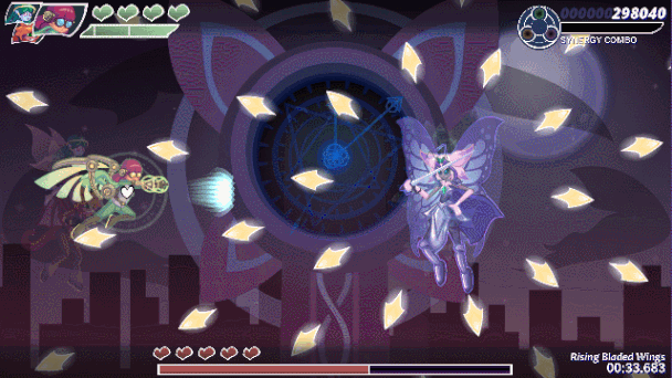 Take control of Gale, Fia, and Casey, three flying fighters with their own unique abilities! Through strategic character swaps, and the power of Synergy Boost, you can overwhelm your foes with tactics and style!