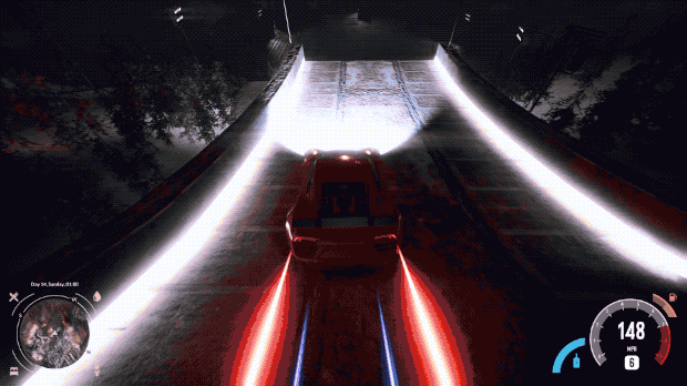 Have fun doing crazy jumps on an abandoned ski jump hill. Show off your skills by drifting around. But remember, if you crash, you'll have to deal with damage and dents. Need an extra boost? Hit the nitro button for a turbo charge. You can drive in two different camera modes - FPP or TPP.