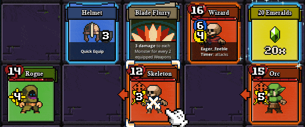 Lost For Swords is a Roguelike Deckbuilder, where the cards in your deck shape the rooms you’re exploring. Make your way up the tower, equip weapons and armor, cast spells and scrolls, activate auras, collect loot and defeat monsters in tactical turn-based combat.