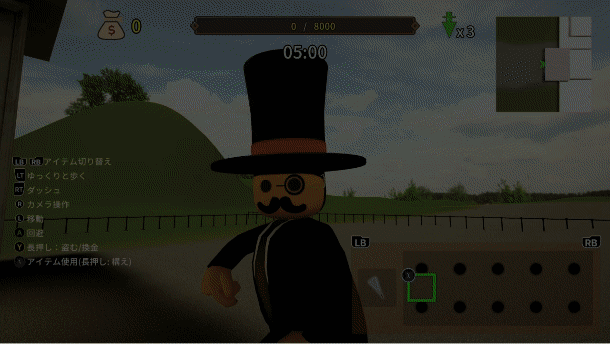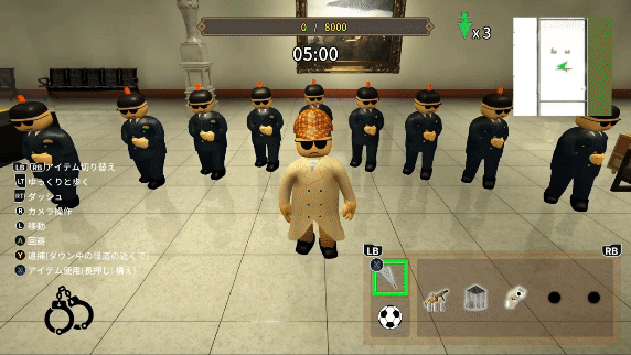 Phantom Theif vs. Detective slapstick online battle action!!! Enjoy lively and funny PvP with multiple items such as Rocket launcher, Invisibility cloak, Bananas, Soccer ball bomb!