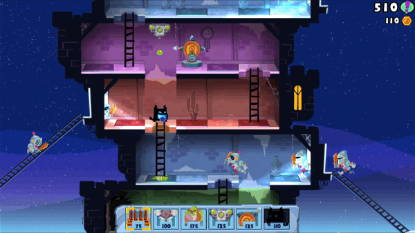 Unlock, upgrade, and customize your traps, troops, and castle on your quest to become the baddest of them all! (OR become Co-Villains alongside a friend in 2-Player Co-Op Mode, which allows you and your partner in crime to play the entire game together locally or via Steam Remote Play!)