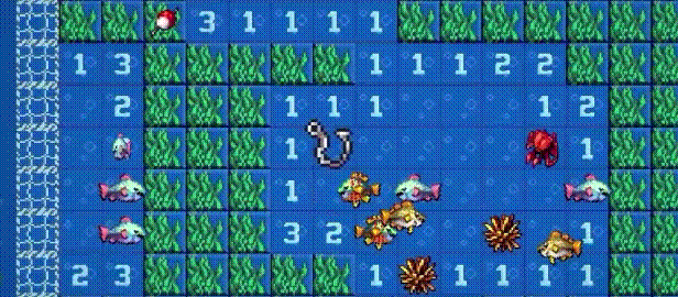 CATCH FISH BY HOOK WHILE AVOIDING ENCOUNTERS WITH UNDERWATER DANGERS