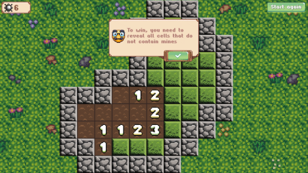 At the beginning of the game you need to go through a small but very detailed tutorial. It clearly shows how the playing field is organized, and how to look at the numbers to calculate where the mines are located.
