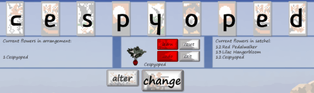 By changing just 1 letter of the Red Pedalwalker, the very first flower you encounter in the game, you can spell TALK, LIE, and ALTER! It's a very powerful flower indeed. As you learn more Spells, you'll be able to change more letters in more ways, and spell even longer and more complicated Spells.