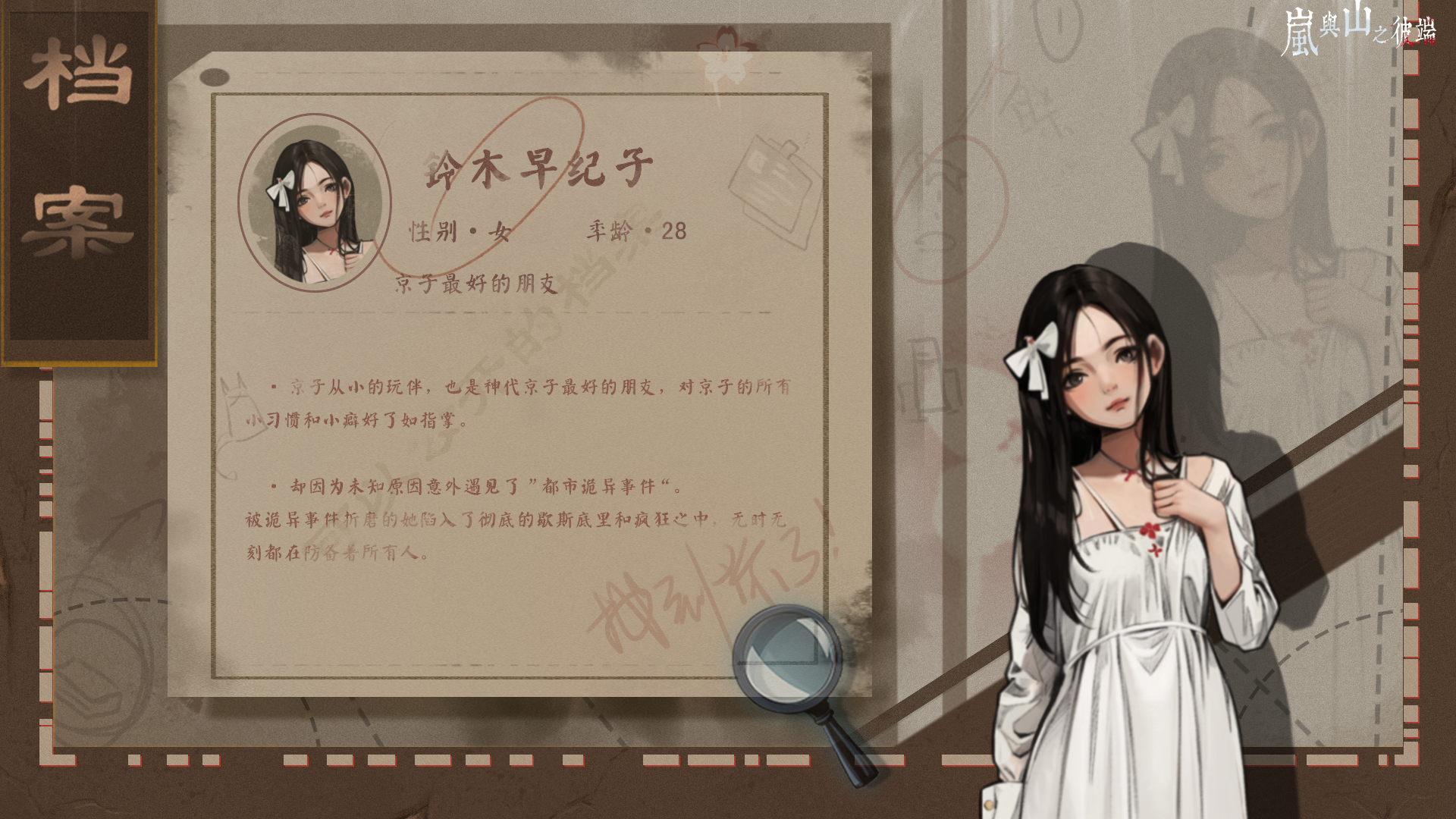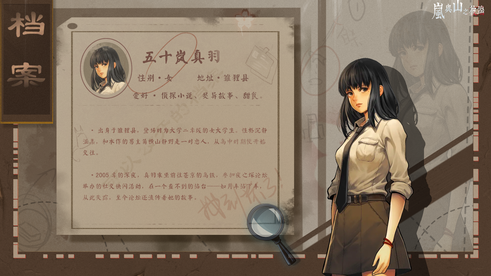 In 2005, a sophomore student named Igarashi Mahane took a private train to Soukyo City. She disappeared after alighting at a station named "Kisaragi". Five years later, her lover, Yokoyama Shizuno, began investigating the case and strange stories started to unfold one after another.