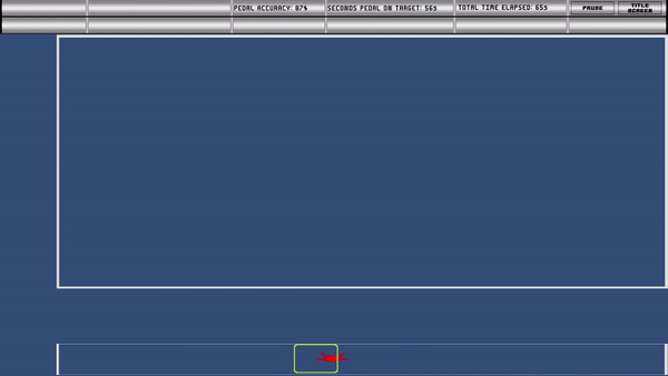- [TBAS] PEDAL TRACKING TEST (Rudder Pedals Recommended): An aircraft silhouette travels horizontally from left to right on the bottom of the screen. Rudder pedals, arrow keyboard keys, or gamepad shoulder buttons are used to move a box over the aircraft silhouette. The goal is to raise your "Pedal Accuracy", which increases when the pedal box is over the aircraft silhouette.