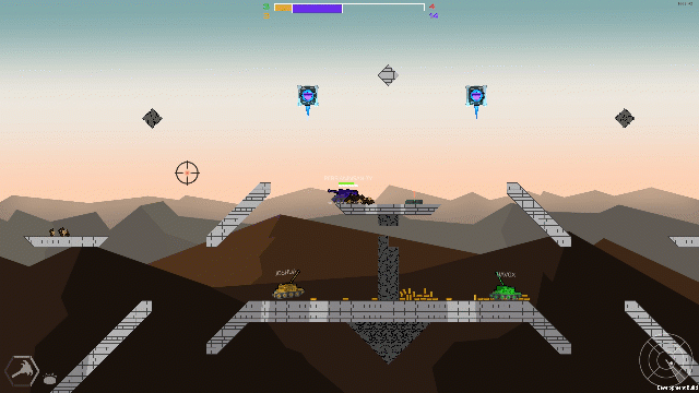 Traverse dynamic terrains and engage in an endless deathmatch with a grappling-hook-equipped tank. Outlast and outmaneuver your opponents in Grapple Tanks, a 2D multiplayer shooter game playable with up to 4 people.