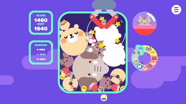 is a physics-based puzzle game where you drop animals from a mechanical claw. When two animals of the same kind touch they merge into bigger ones!