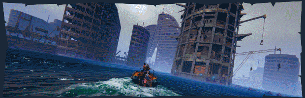 The ocean destroyed a once great civilization, but people survived and adapted. They built settlements on the roofs of tall buildings and the tops of other man-made structures. People travel across the ocean in tiny boats and huge combat vessels. The ocean provides everything they need, including extractable resources on the seabed. And yet, the dream of real land is still alive.