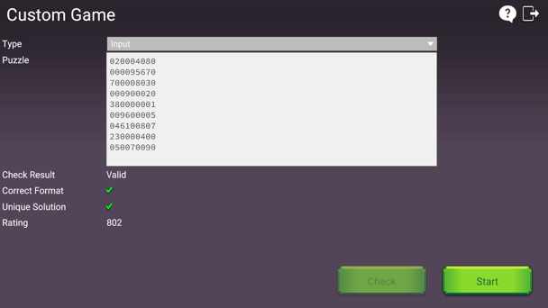 In this game, whether you see a puzzle in a book, video, or website, you can just type it in and start playing. Other sudoku games in general do not support entering your own puzzles.