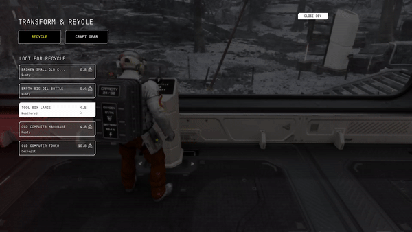 Crafting with Pristine materials ensures that your equipment will last much longer, especially under the corrosive effects of acid rain, compared to items made from lower-quality, Rusty materials. The recycling process allows you to convert lower-quality materials into higher-quality ones, but at a cost: you lose some material quantity in the process. This trade-off between quantity and quality is key to your survival strategy, as the sturdiness and longevity of your equipment can be the difference between life and death in this harsh, desolate world.