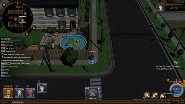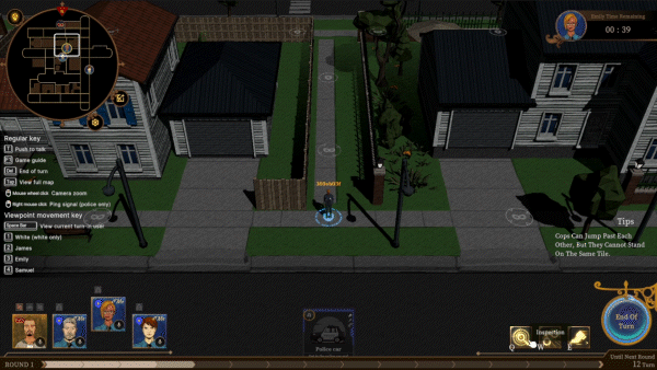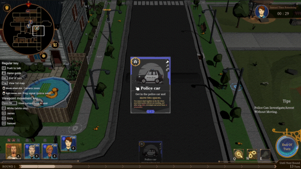⚬ You can only arrest one of the white tiles adjacent to you. (Once per turn for each police character)