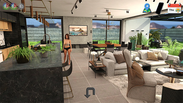 Explore an open world where each character goes about their daily routine.