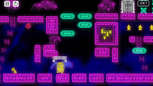 Some walls can be destroyed. Use this to collect coins and unlock secret rooms.