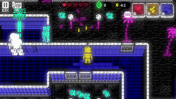 Complete levels of arcade games and collect cartridges. To start an arcade game, you need a token. Tokens can be purchased from cashiers for coins. Coins drop from monsters as loot.
