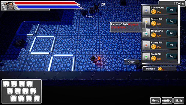 A game for rapidly shaping heroes, featuring randomized equipment attributes and combat maps. After leveling up, you can customize attribute enhancements and learn skills of your choice, with the goal of defeating bosses upon entering combat.