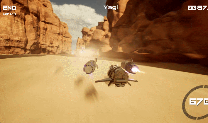 Dual engine, twin stick controls - Independently control each engine for nuanced handling at blistering speeds. Intuitive to learn, but hard to master. Master the trade offs and perfect your style of piloting as each side's engine has a thrust, lift, and strafe components allowing for multiple techniques of tackling turns or entering flow state through the chicanes.