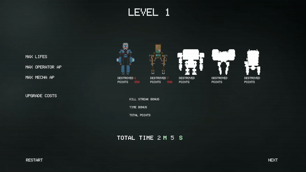 In addition to defending the Core, your mission entails defeating all enemies scattered across the levels. Collect points throughout each level to unlock upgrades, enhancing your Mechs and Pilot's abilities between missions.