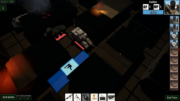 You can hear enemy Tanks moving, but you can not see them afar due to no electricity, no light, night time, dust storm. It feels like there is no hope. When you finally able to see enemy Tank near you, make both plan A - attack and plan B - back to save zones. You can hide behind buildings, destroyed Tanks, just know that Tank has same line of sight as your Soldiers. Remember, this is your City, you must take last stand, you must save your citizens.