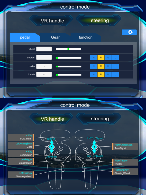 Newly added steering wheel control mode, which allows for the selection of VR joystick and steering wheel operation modes