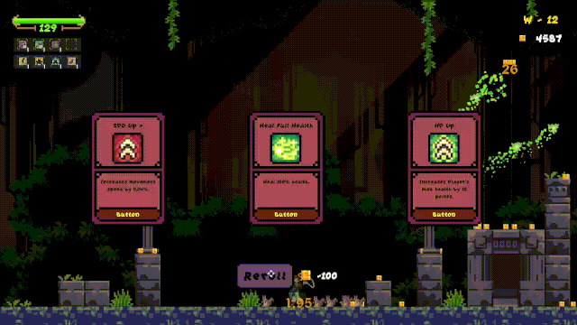 You can choose 4 green cards and 4 blue cards after each wave. Find the best build possible and reach the highest level you can!