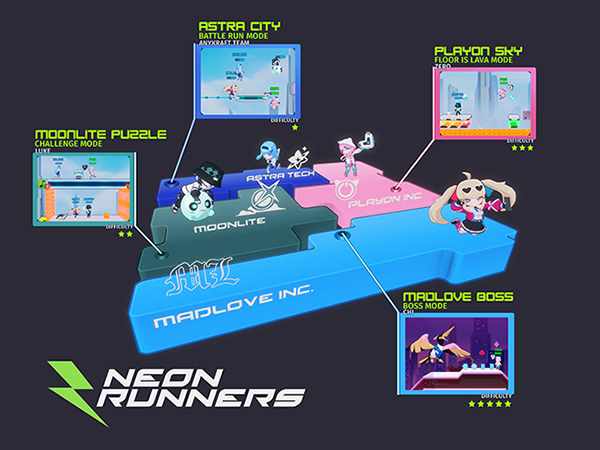 ■ An ever-evolving gameOur plan is to keep adding to this game for as long as players find joy in it. This means new runners, new powerups, new levels, but also, of course, new map objects and toys for you to use in your levels. Soon enough, we imagine that the community will know more than us about making Neon Runner levels and we're looking forward to building you the tools you need to make the level of your dreams.