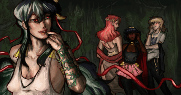 A dark sapphic visual novel about fallen angels.