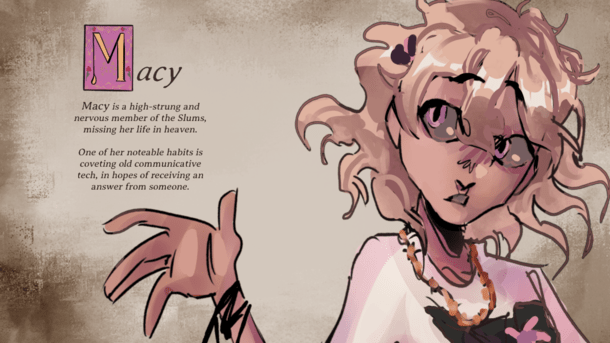 Choice-based branching with 4 unique endings... and a bonus Free Roam route where you explore the slum's depths...