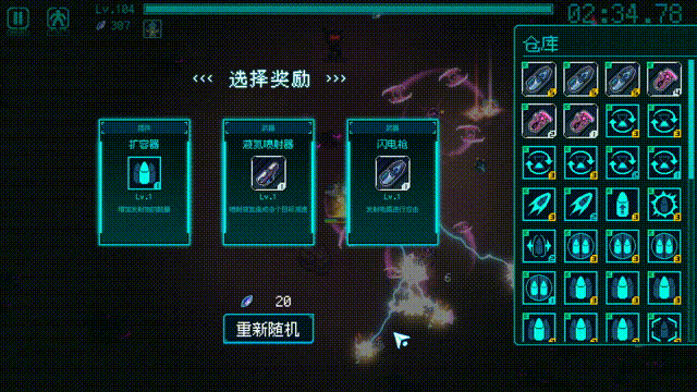 This work is inspired by "Crimsonland", "Vampire Survivor" and "Into the Breach". I hope you like it.