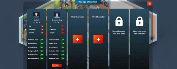 Select from 16 unique characters and customize their attributes and abilities to suit your vision of a game development tycoon.