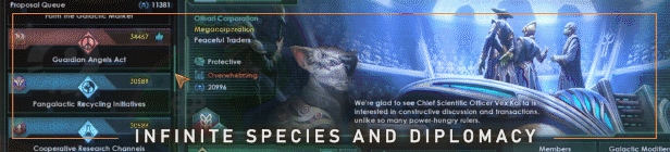 Through customization and procedural generation, you will encounter infinitely varied races. Choose positive or negative traits, specific ideologies, limitations, evolutions or anything you can imagine. Interact with others through the advanced diplomacy system. Diplomacy is key in a proper grand strategy adventure. Adjust your strategy to your situation through negotiation and skill.