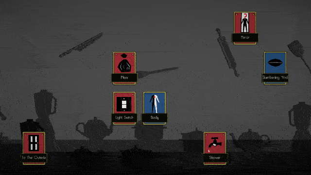 An experimental art game that mixes point 'n click adventures with card games in an accessible way.