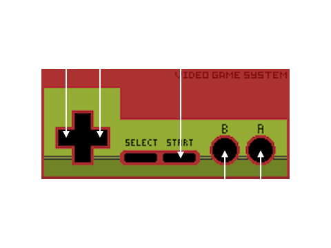 Use the cursor keys to move left and right, press B to shoot, and A to jump.