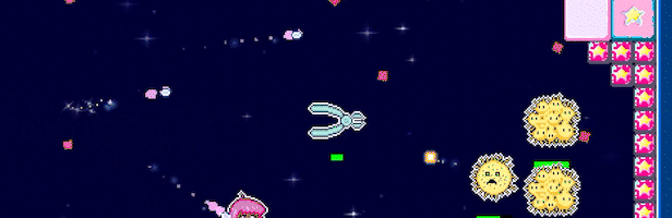 Play as a tooth fairy in this shoot'em up (shmup) inspired game. She's always flying forward, and you must use the right and left directional buttons to rotate the flight direction. Shoot magical attacks at rotten teeth and bacteria while dodging traps until you reach the magical portals to advance to the next level.