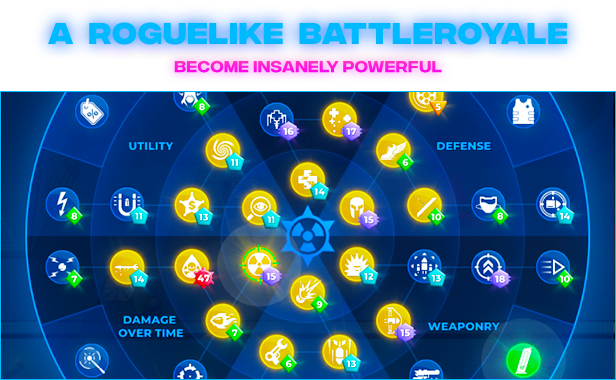 Like a rogue-lite, skill choices are randomly generated, so each game plays different and you'll need to adapt to survive. And with ultra-fast 5 minute rounds, you'll have to think on your feet to create a skill build strong enough to win the final showdown!