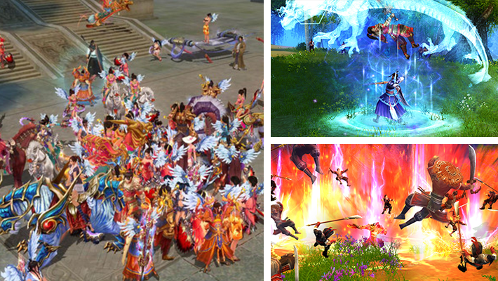 Every Saturday, the dynasties fight each other to become the new rulers of the city of Nuwa. The City War is made up of two stages. Firstly, the warriors breach the city gates and destroy the statues and bosses in the city. Then the dynasties race with one another to collect the highest number of flags and become the new rulers. The winning clan receives the highest share from the treasure of the city!