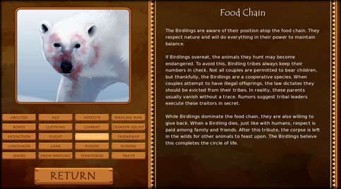 The Last Birdling's lore through the glossary page. Throughout your journey, you will find links that take you to relevant entries.