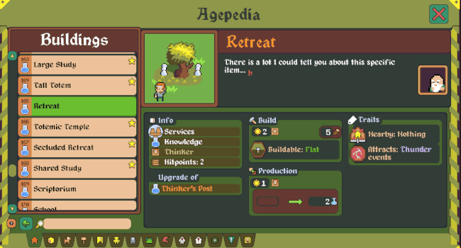 The memories of the Elder are unclear, so each run will be different, with new buildings to discover. Play with more than 200 buildings, 30 professions, and 70 resources.