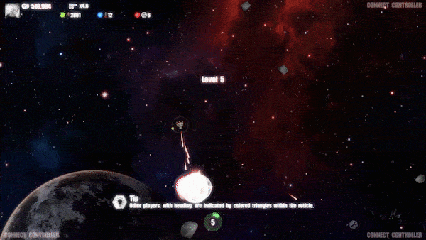 Fly solo, or with up to three of your friends in local multiplayer mode. Play co-op against waves of enemies or square off against each other in a wide-open combat arena. Players can join at any time with no need to setup complex game modes. Keep your straight during intense combat by customizing your primary and secondary ship colors, or configure friendly fire/collisions to adjust the level of co-op.